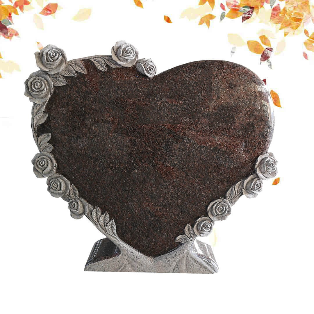 Forme de coeur avec usine de pierre tombale sculptée de fleurs