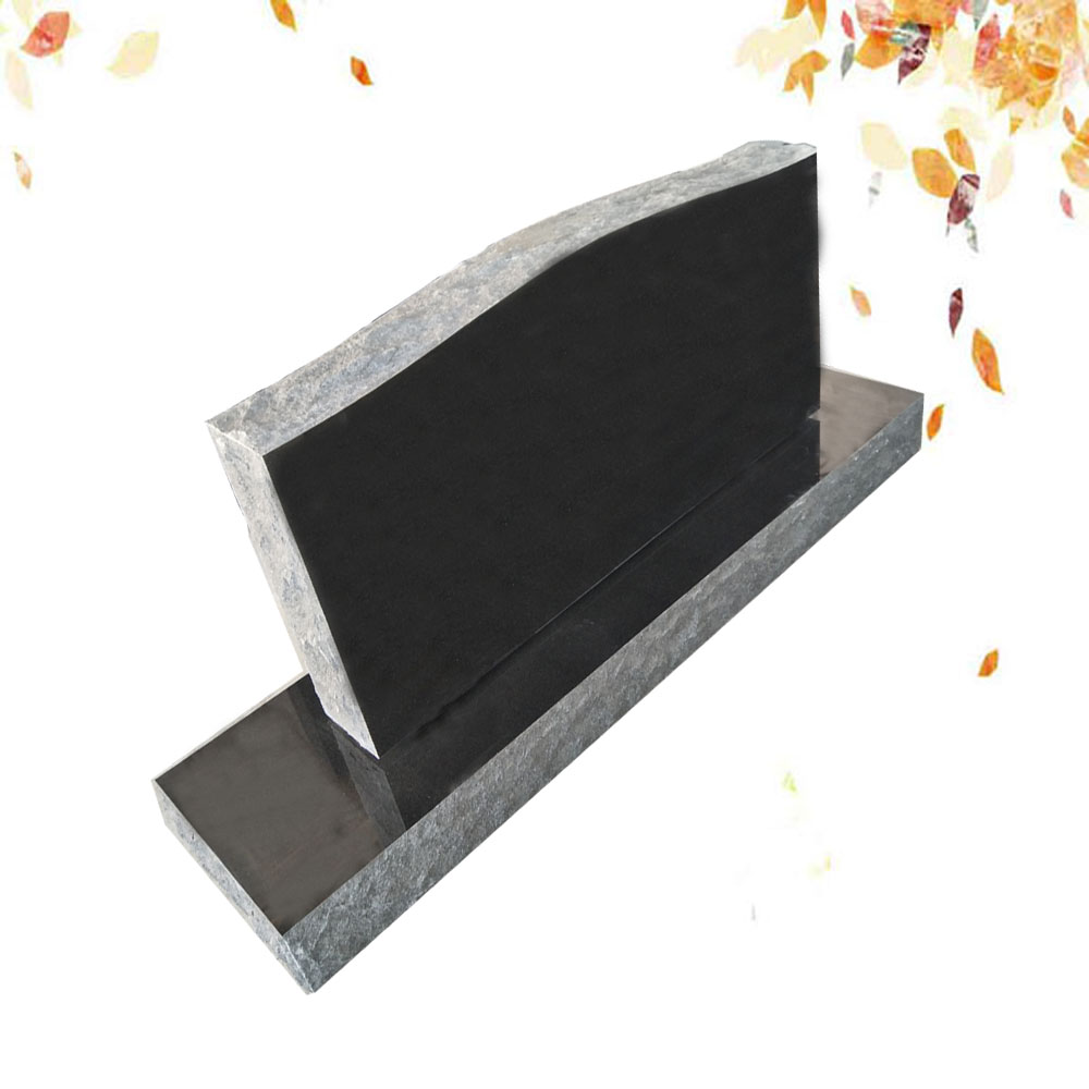 Monument simple en granit noir fin finition poli et brut.
