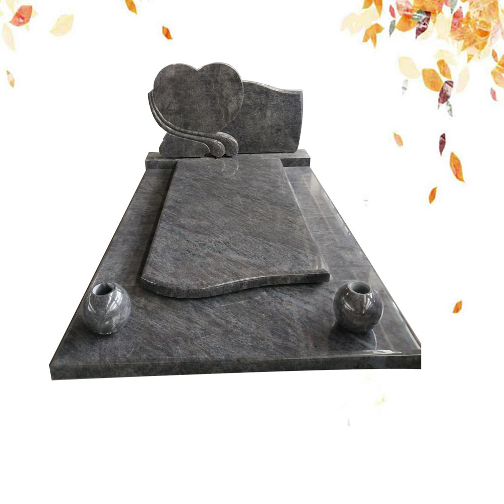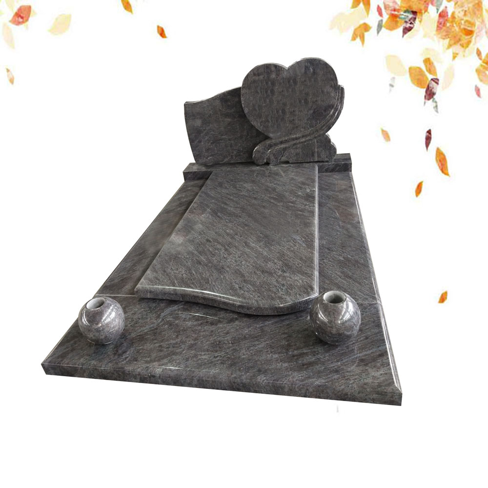 Monument funéraire, comprenant soubassement en quatre pieces, une tombale, une stèle sur socle et deux vases boules en granit mass blue.